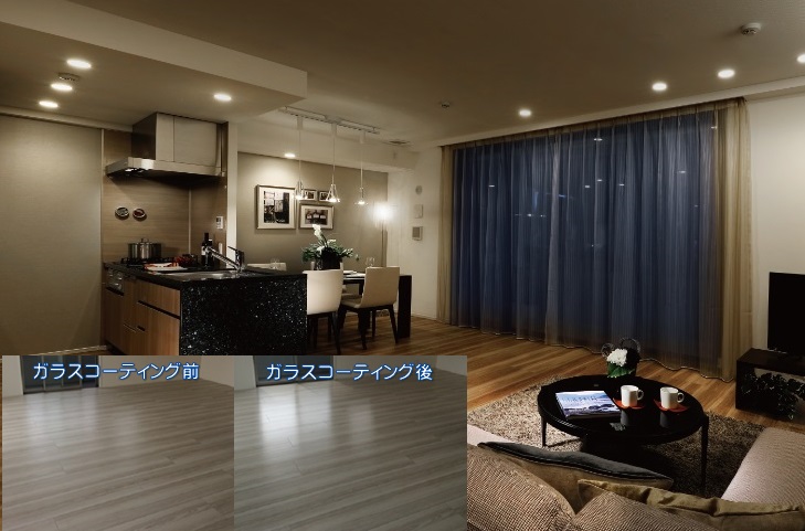 ガラスコーティングは、ナノコンポジット技術によりフローリングに強固なガラス膜を形成するコーティングです。